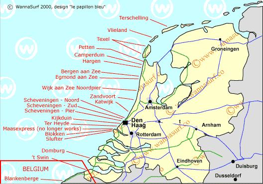 Hollande plage de carte. Pays-bas la plage de la carte (Europe de l'Ouest - Europe) à imprimer. Pays-bas la plage de la carte (Europe de l'Ouest - Europe) à télécharger.